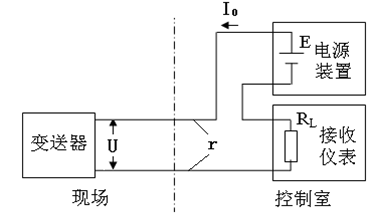 對于二線制變送器,同變送器連接的導線只有兩根,這兩根導線同時傳輸供電電源和輸出信號,如圖所示。可見,電源、變送器和負載電阻是串聯的。二線制變送器相當于一個可變電阻,其阻值由被測參數控制。當被測參數改變時,變送器的等效電阻隨之變化,因此流過負載的電流也變化。